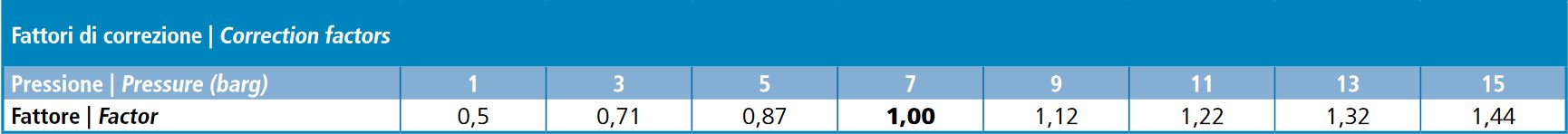 Debitul de aer al filtrului (l/min) = Debit refulat de compresor (l/min) / Factorul de corectie functie de presiunea de lucru