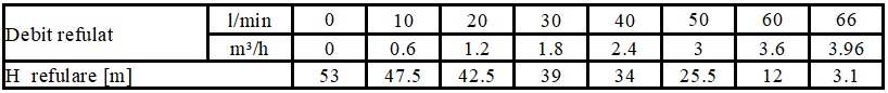 | Inaltime de refulare (m) | 53 |