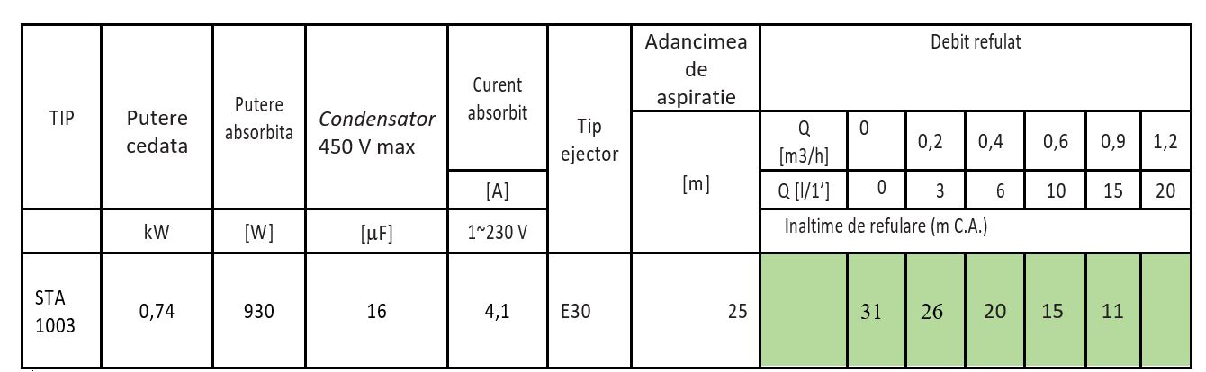 | Adancime de aspiratie (m) | 25 |