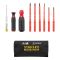 Set de 10 bucati care include: surubelnite drepta 3,5 mm, drepta 5,5 mm, PH 1, PH 2, PZ 1, PZ 2, tester de retea (125-250V), maner mare si mic, husa compacta si durabila pentru scule.